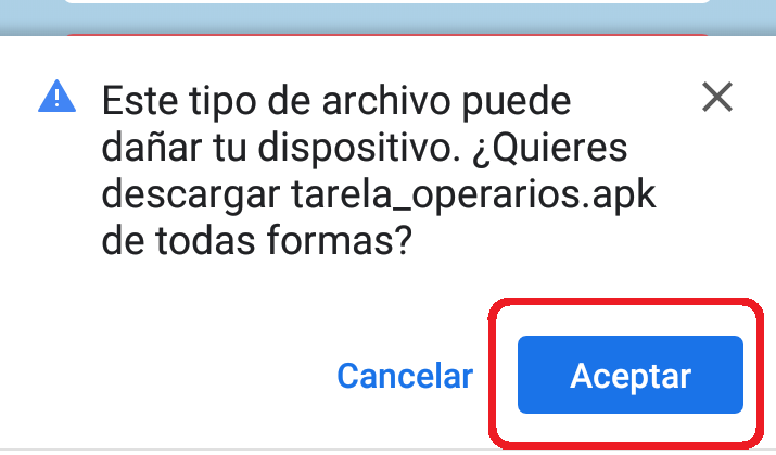 Una vez pulsado el enlace de descarga, el navegador le preguntará si desea iniciar la descarga. Acepte todas las preguntas de seguridad que realice.
