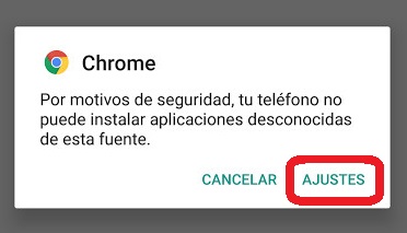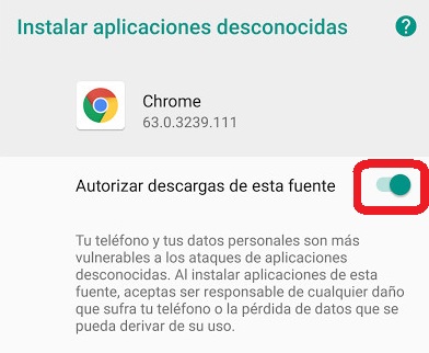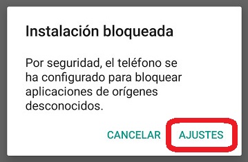 Si es la primera vez que inicia la instalación, se le solicitará autorizar la instalación de aplicaciones de "Orígenes desconocidos" o "Fuentes desconocidas"