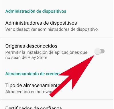 Active la opción "Fuentes Desconocidas" u "Orígenes desconocidos".